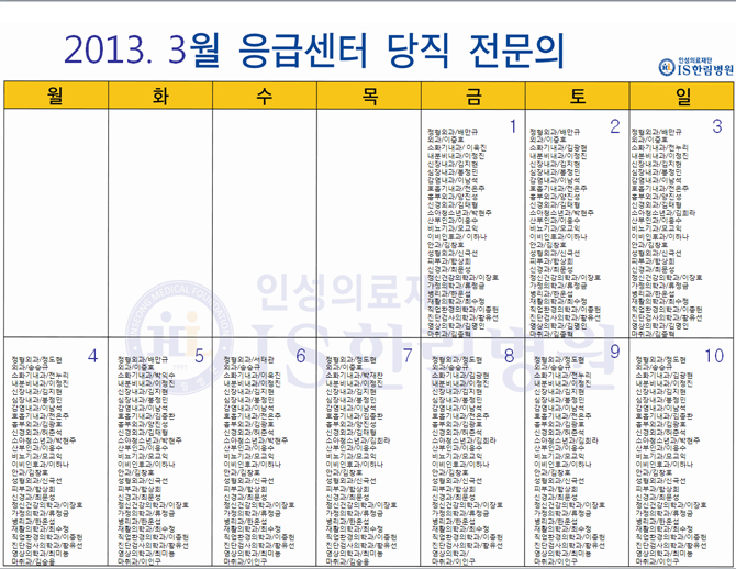 3월 응급의료센터 당직전문의 명단