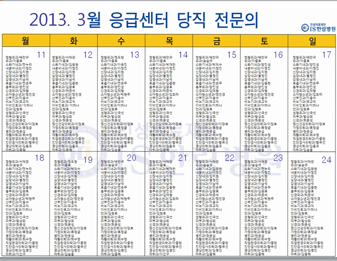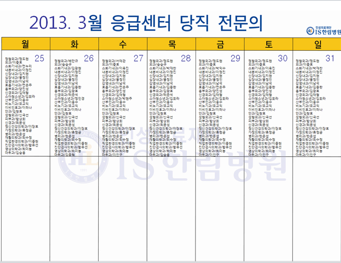 첨부. [한림병원] 3월 응급의료센터 당직전문의 명단.zip