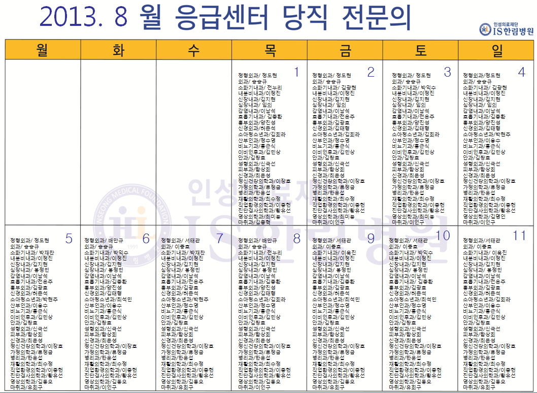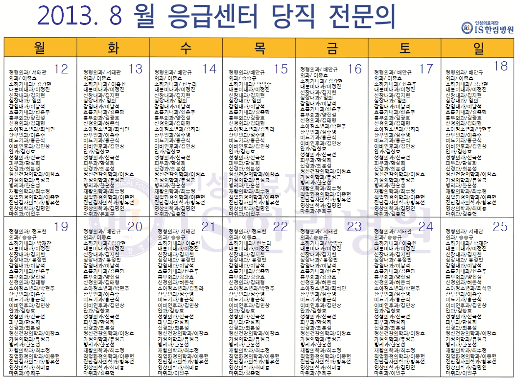 첨부. [한림병원] 8월 응급의료센터 당직전문의 명단.zip
