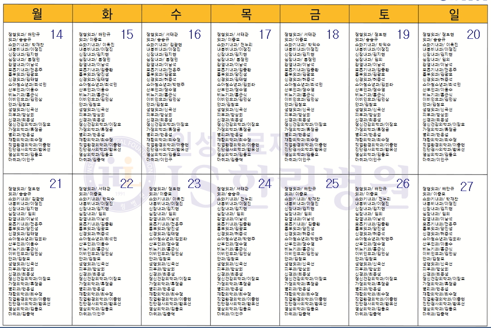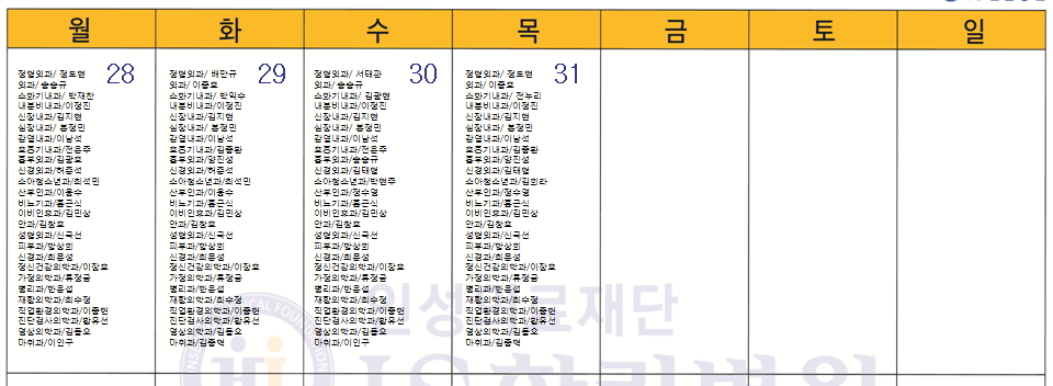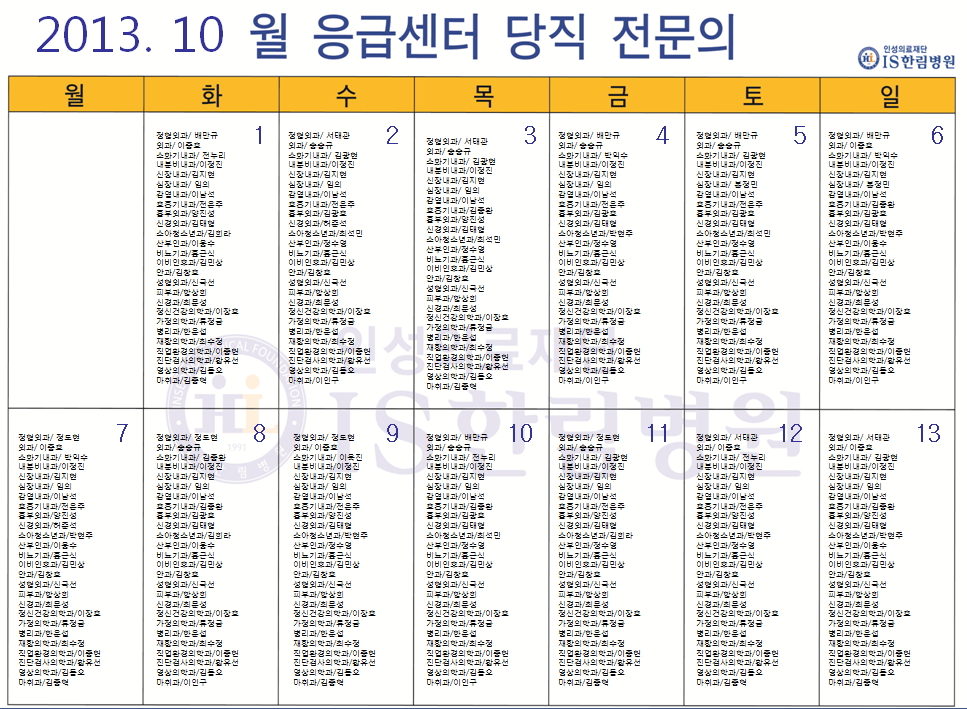 10월 응급의료센터 당직전문의 명단