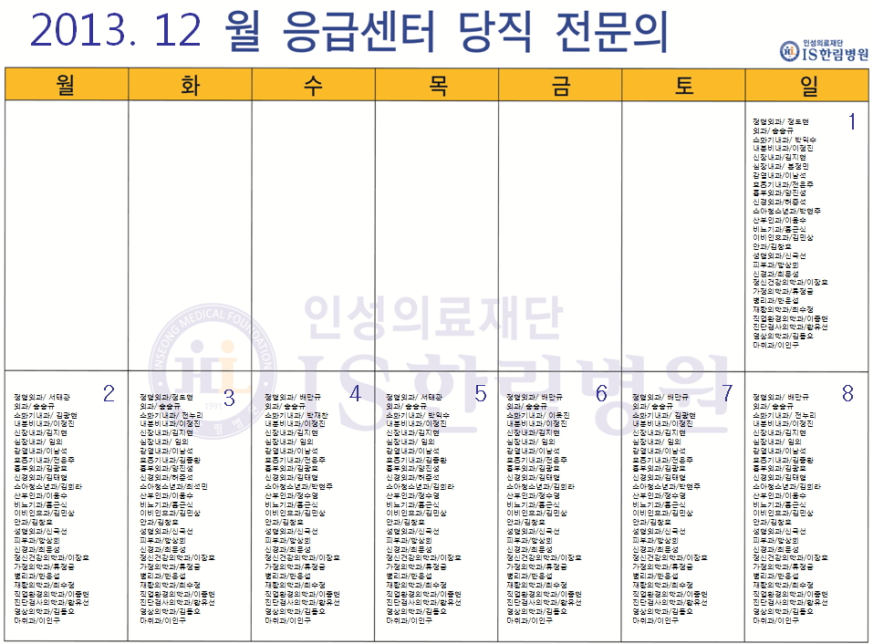 '응급의료에 관한 법률' 일부 개정 법률안 공표에 따라 홈페이지에 당직전문의 명단을 게시합니다.
