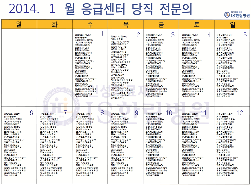 '응급의료에 관한 법률' 일부 개정 법률안 공표에 따라 홈페이지에 당직전문의 명단을 게시합니다.