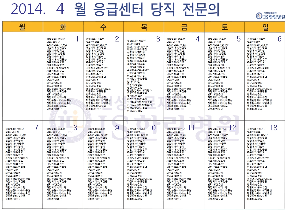'응급의료에 관한 법률' 일부 개정 법률안 공표에 따라 홈페이지에 당직전문의 명단을 게시합니다.