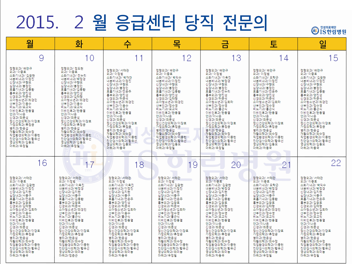 '응급의료에 관한 법률' 일부 개정 법률안 공표에 따라 홈페이지에 당직전문의 명단을 게시합니다.