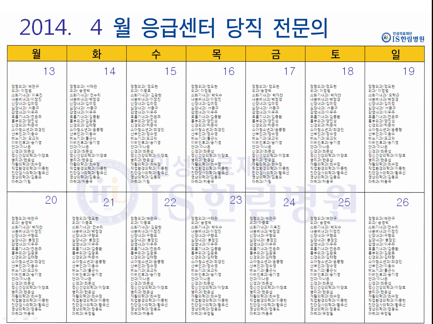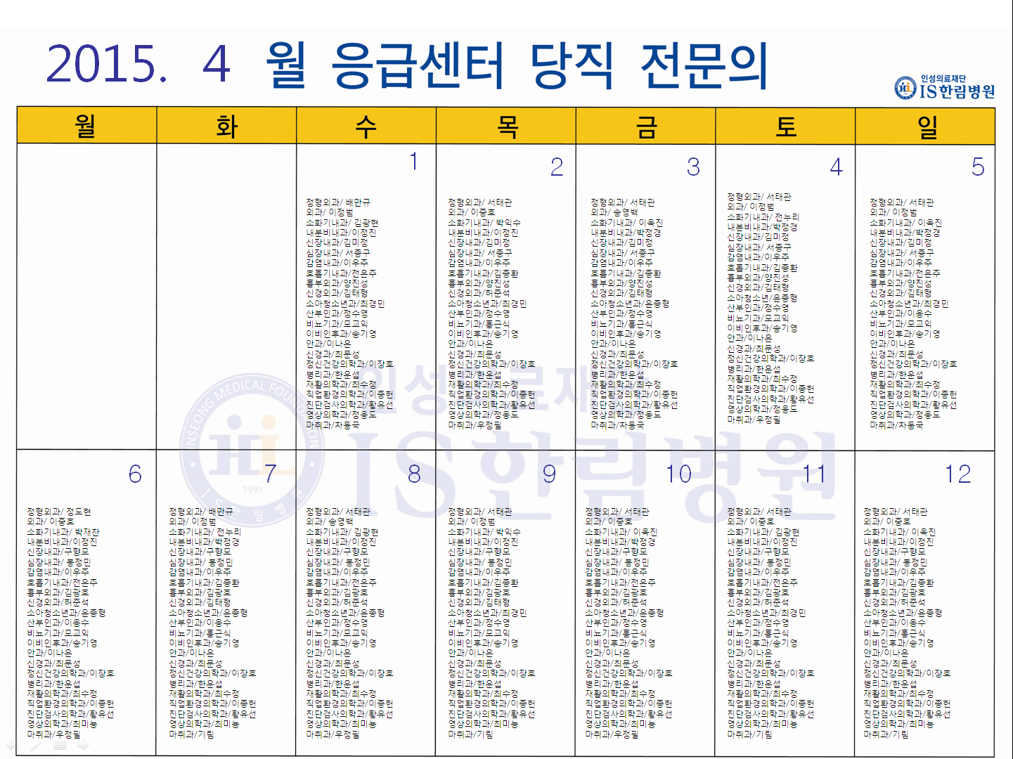 '응급의료에 관한 법률' 일부 개정 법률안 공표에 따라 홈페이지에 당직전문의 명단을 게시합니다.