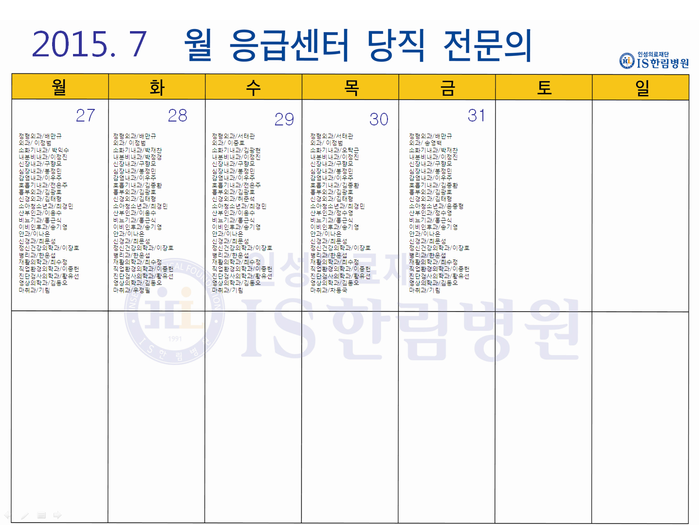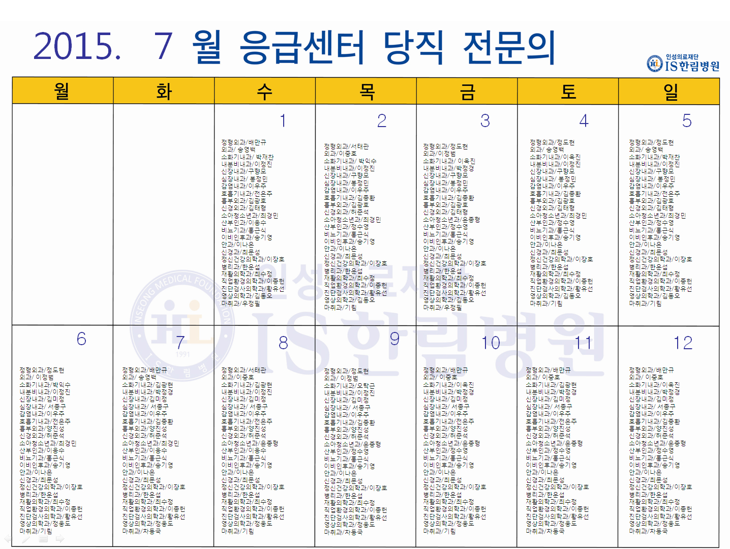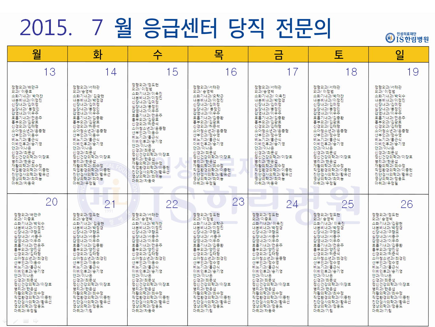 '응급의료에 관한 법률' 일부 개정 법률안 공표에 따라 홈페이지에 당직전문의 명단을 게시합니다.