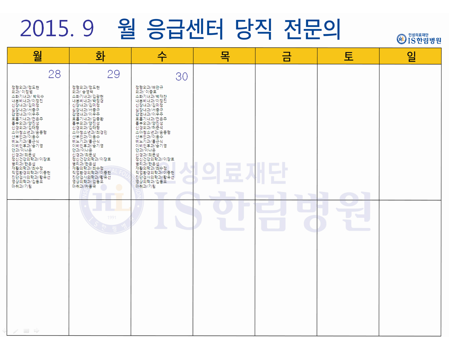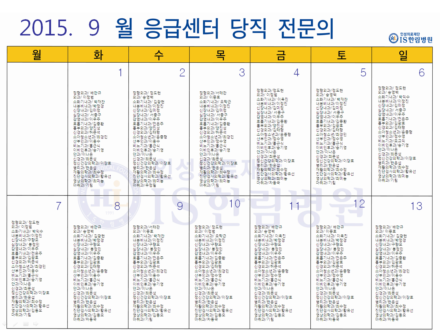 '응급의료에 관한 법률' 일부 개정 법률안 공표에 따라 홈페이지에 당직전문의 명단을 게시합니다.