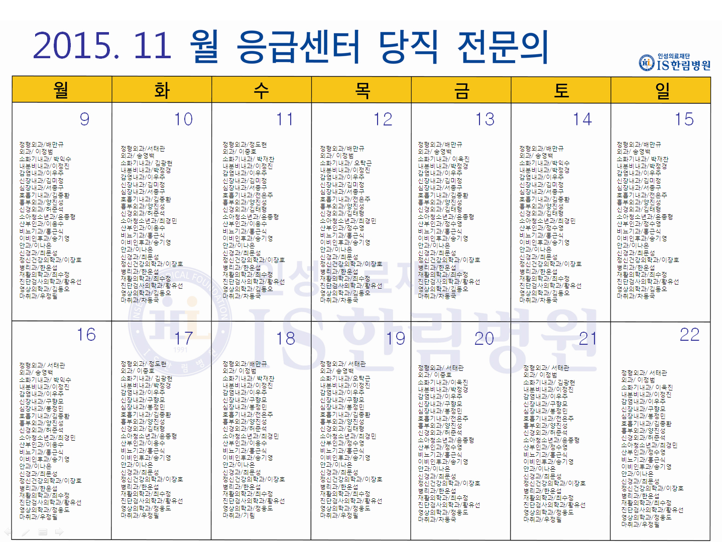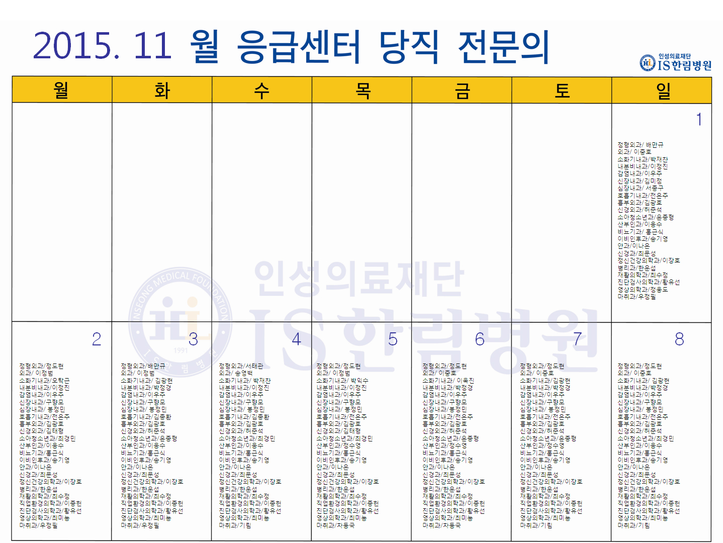 '응급의료에 관한 법률' 일부 개정 법률안 공표에 따라 홈페이지에 당직전문의 명단을 게시합니다.