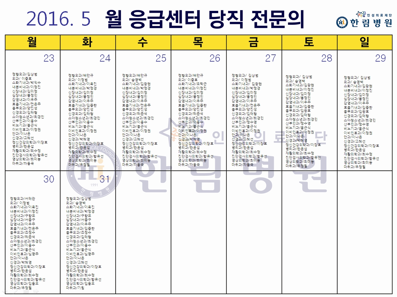응급의료에 관한 법률' 일부 개정 법률안 공표에 따라 홈페이지에 당직전문의 명단을 게시합니다.