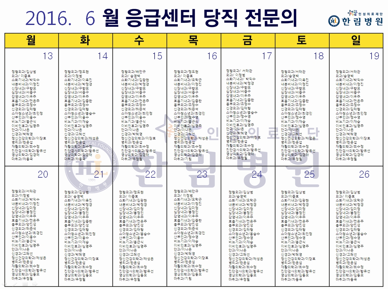 응급의료에 관한 법률' 일부 개정 법률안 공표에 따라 홈페이지에 당직전문의 명단을 게시합니다.
