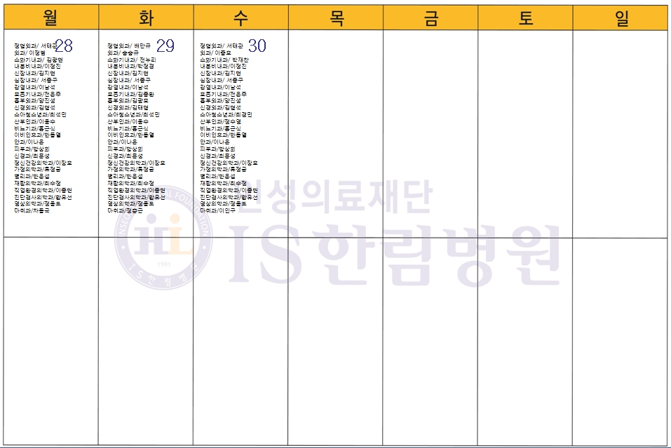4월 응급의료센터 당직전문의 명단