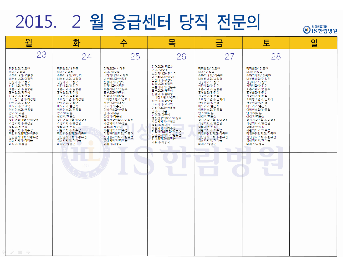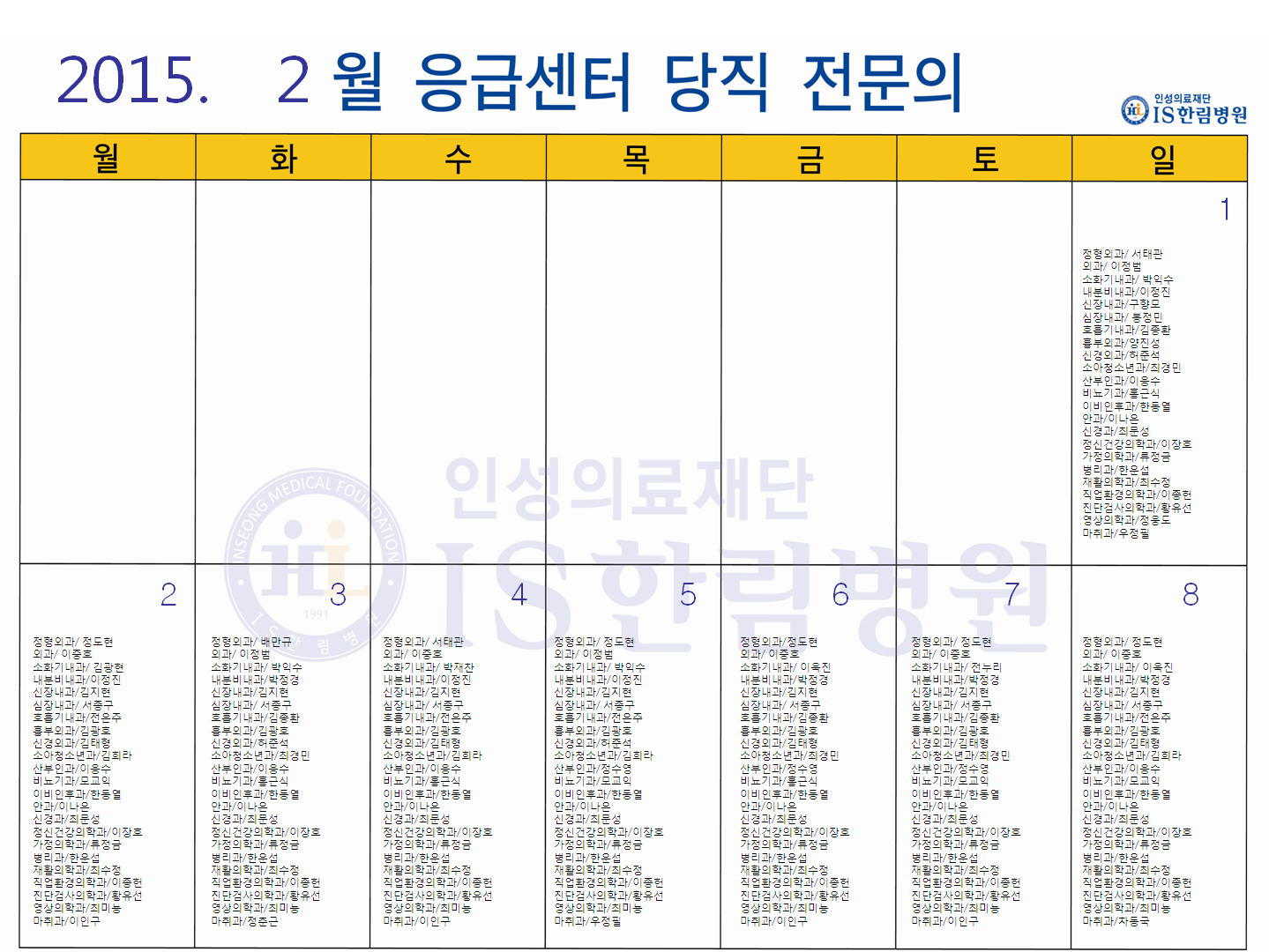 '응급의료에 관한 법률' 일부 개정 법률안 공표에 따라 홈페이지에 당직전문의 명단을 게시합니다.