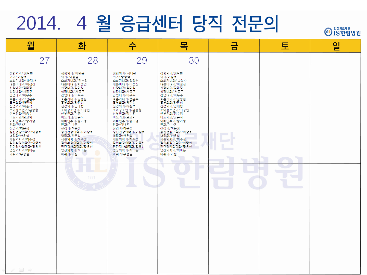 '응급의료에 관한 법률' 일부 개정 법률안 공표에 따라 홈페이지에 당직전문의 명단을 게시합니다.