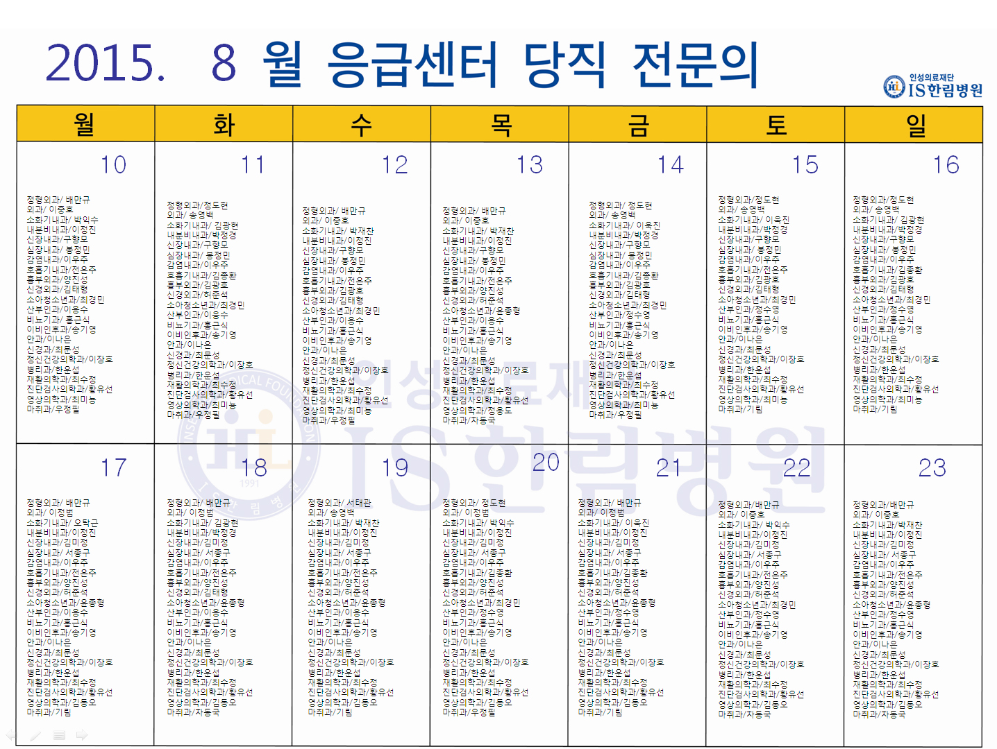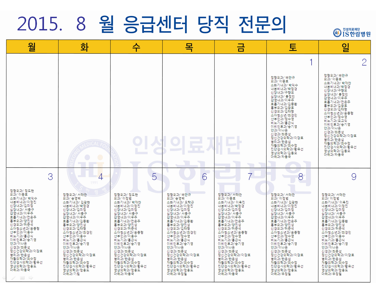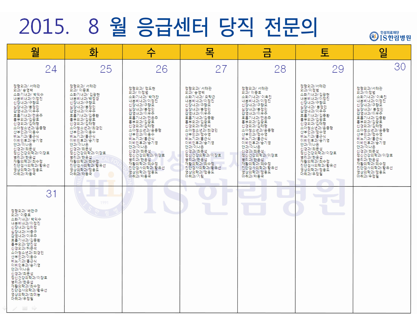 '응급의료에 관한 법률' 일부 개정 법률안 공표에 따라 홈페이지에 당직전문의 명단을 게시합니다.