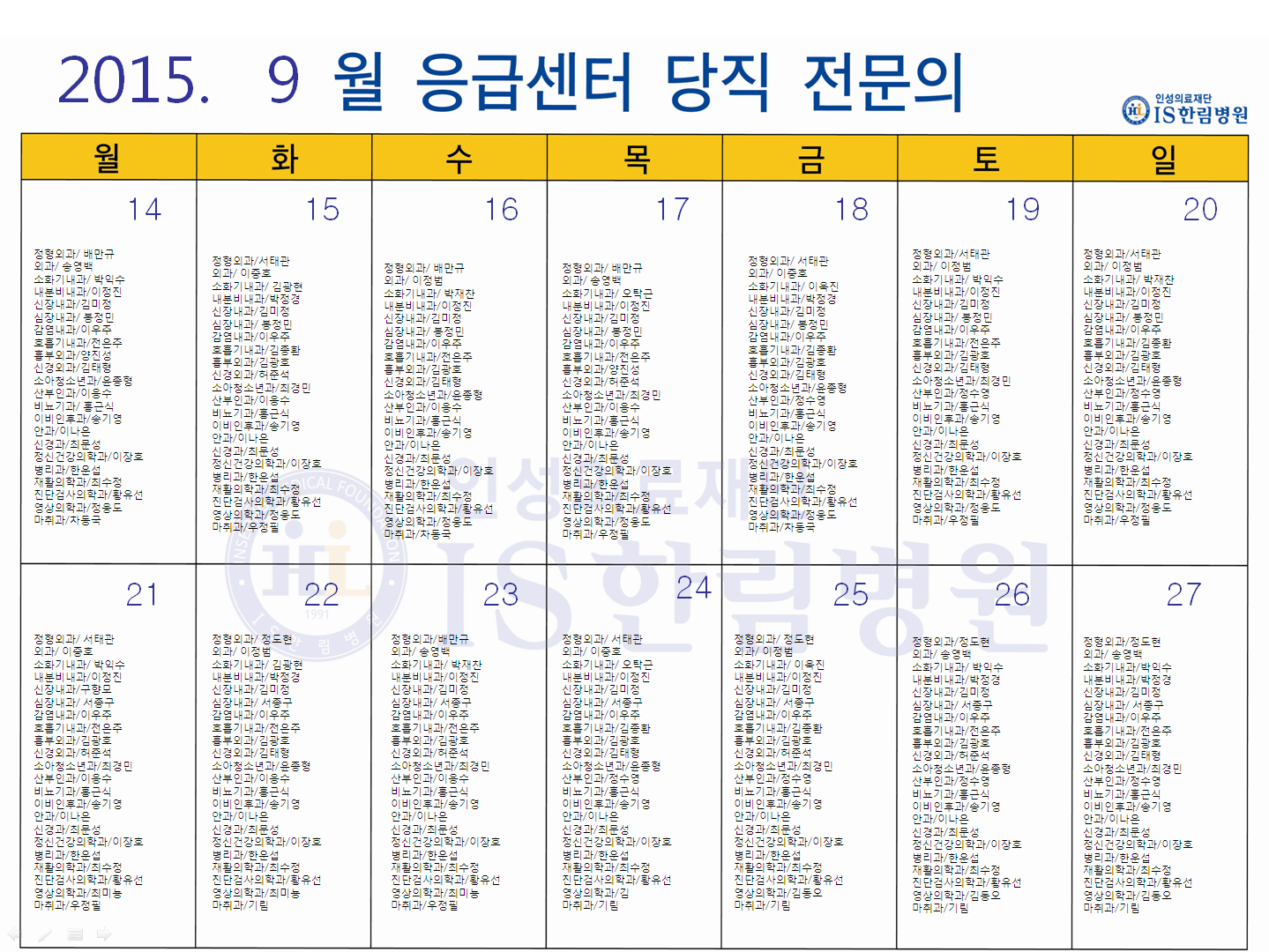 '응급의료에 관한 법률' 일부 개정 법률안 공표에 따라 홈페이지에 당직전문의 명단을 게시합니다.
