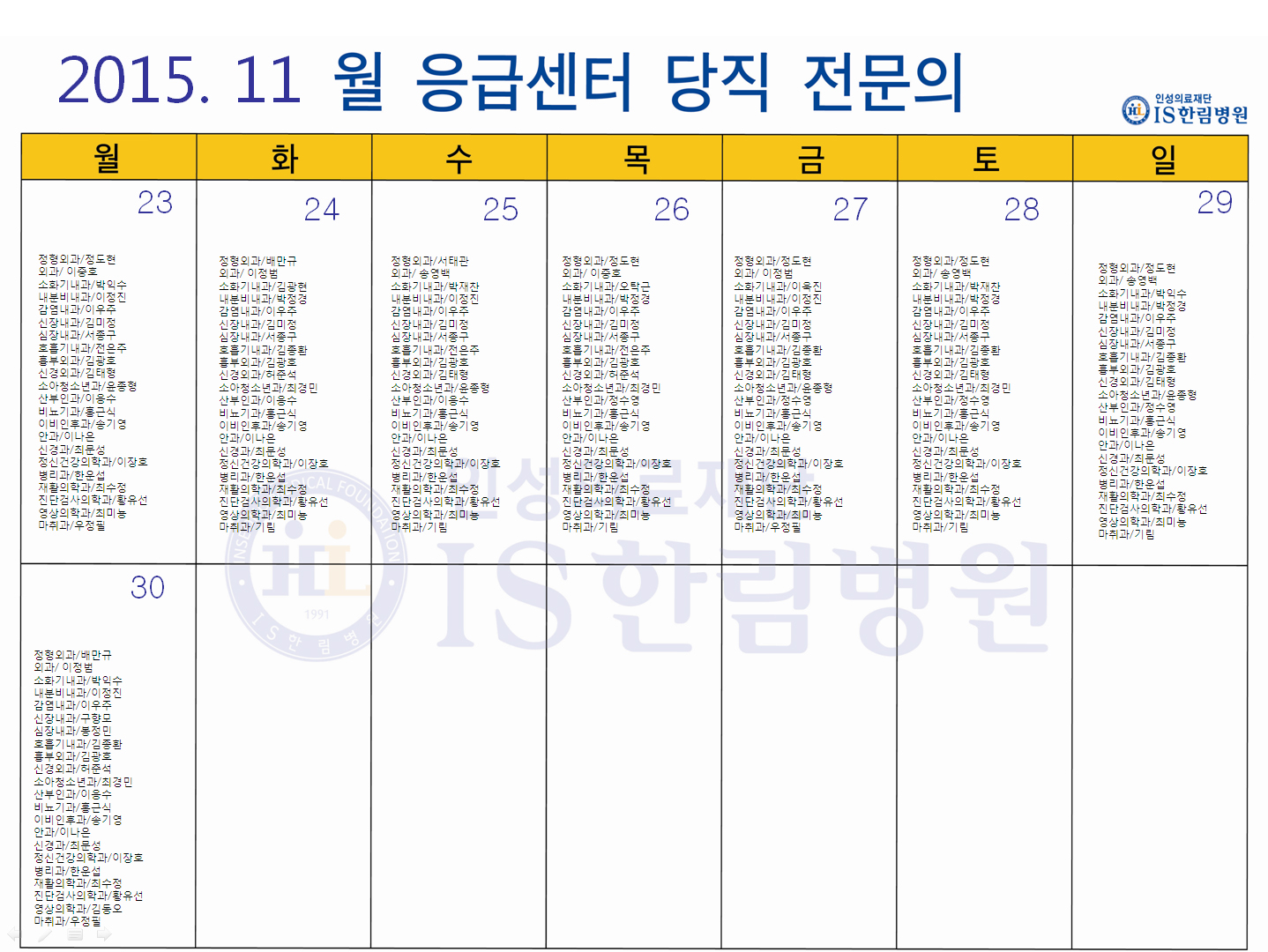 '응급의료에 관한 법률' 일부 개정 법률안 공표에 따라 홈페이지에 당직전문의 명단을 게시합니다.