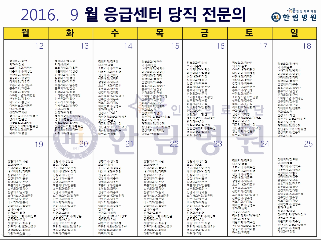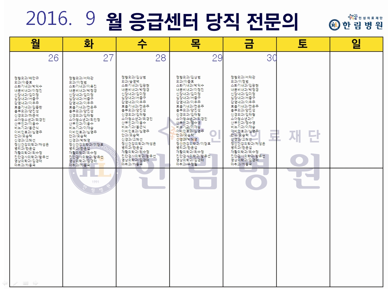 응급의료에 관한 법률' 일부 개정 법률안 공표에 따라 홈페이지에 당직전문의 명단을 게시합니다.