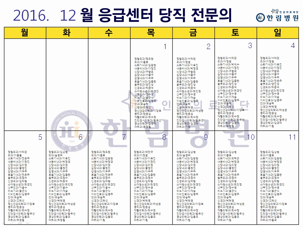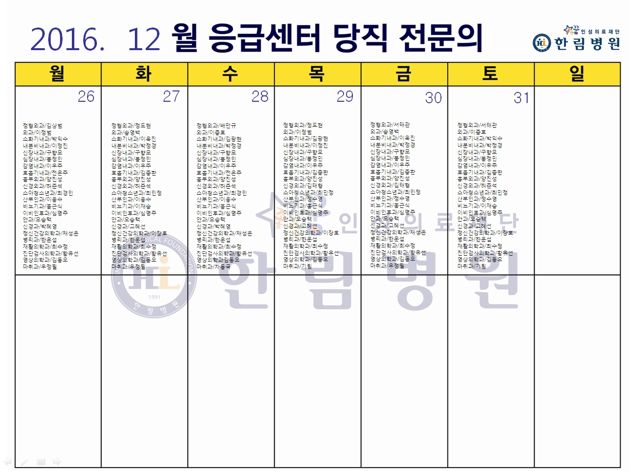 응급의료에 관한 법률' 일부 개정 법률안 공표에 따라 홈페이지에 당직전문의 명단을 게시합니다.