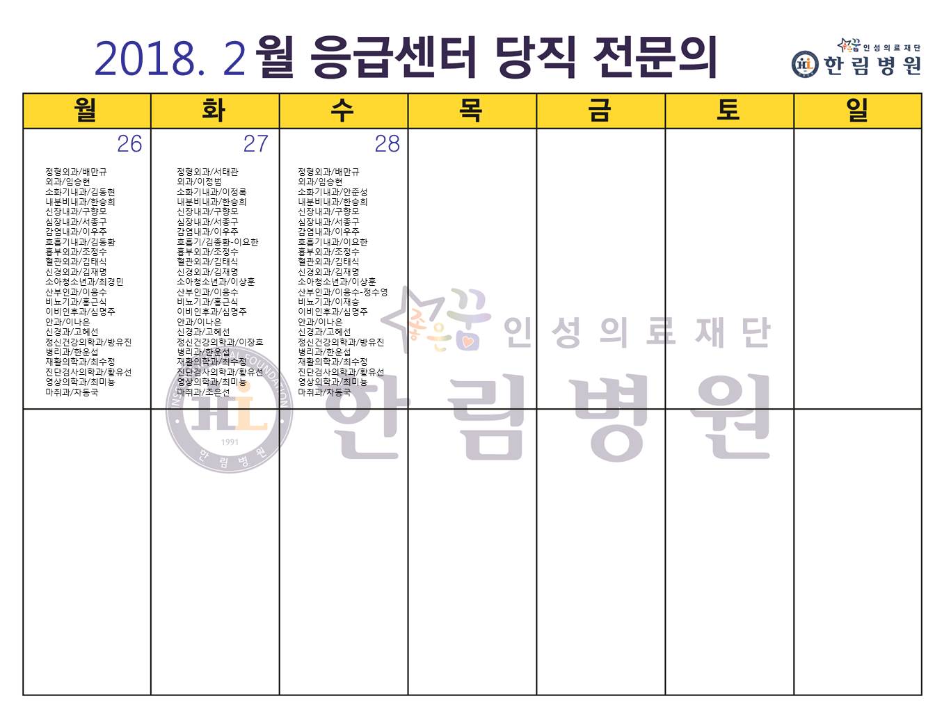 2월 응급의료센터 당직전문의 명단