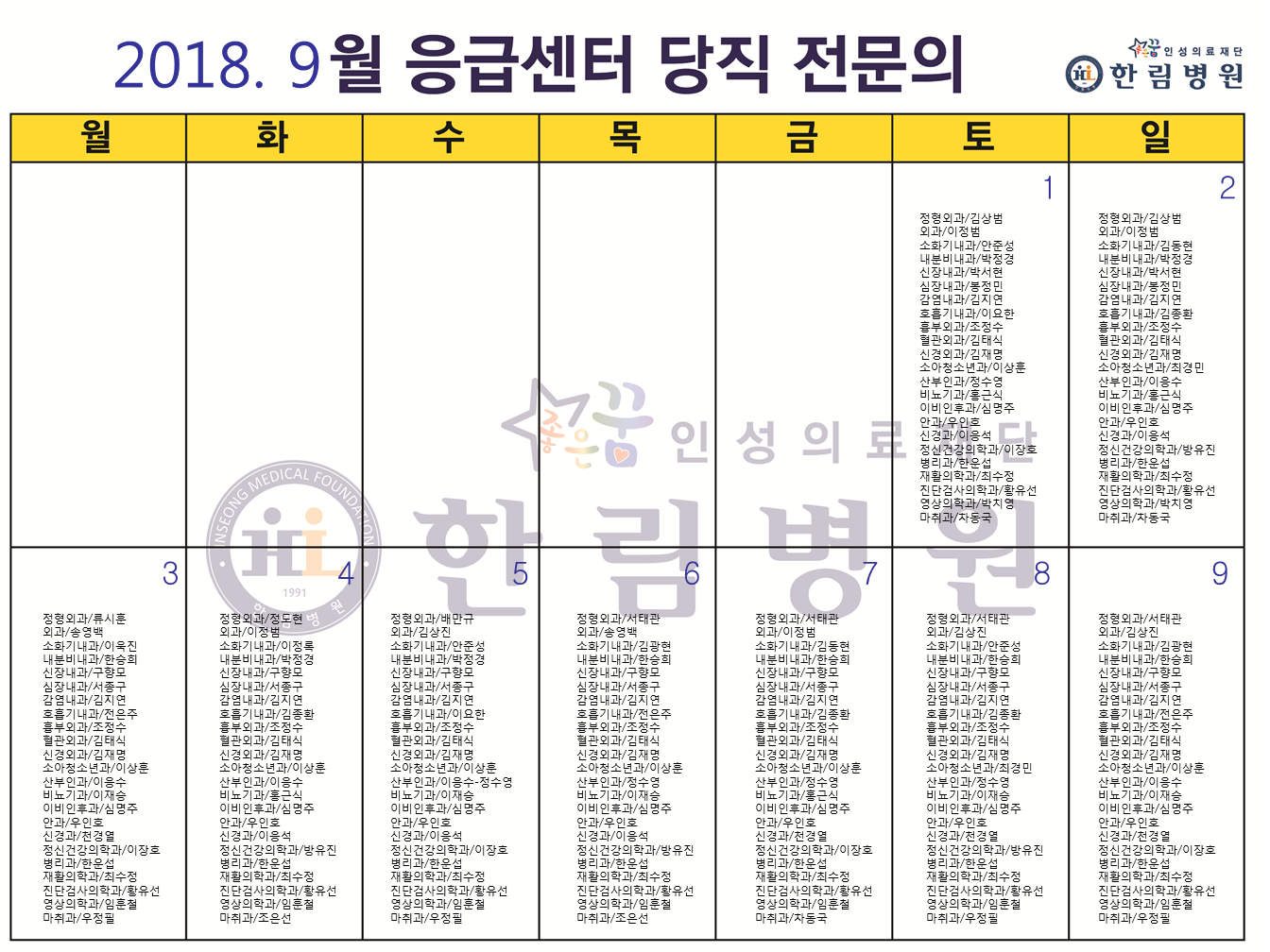 응급의료에 관한 법률' 일부 개정 법률안 공표에 따라 홈페이지에 당직전문의 명단을 게시합니다.
