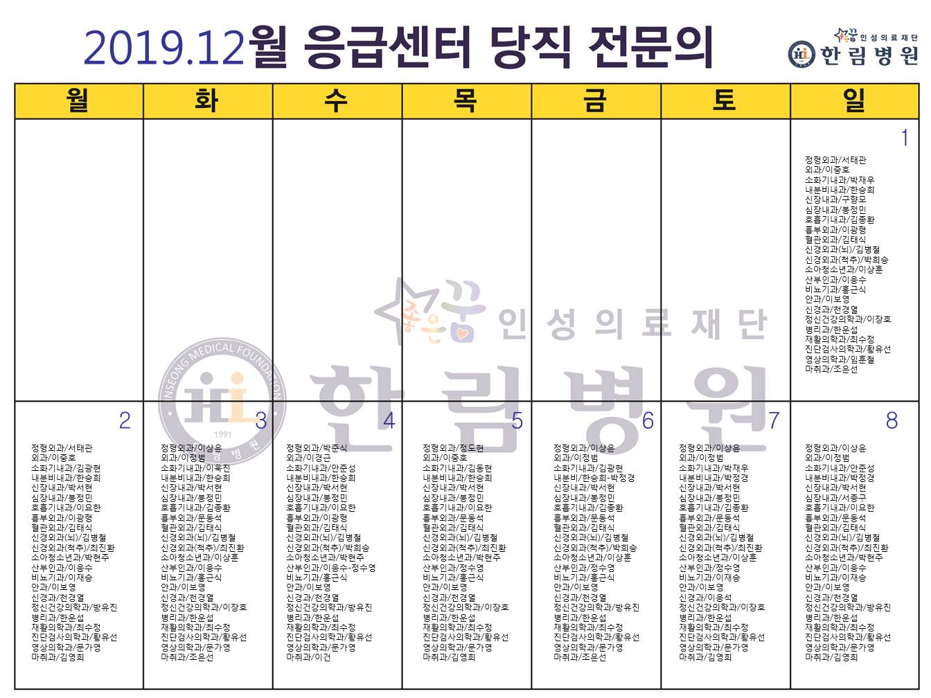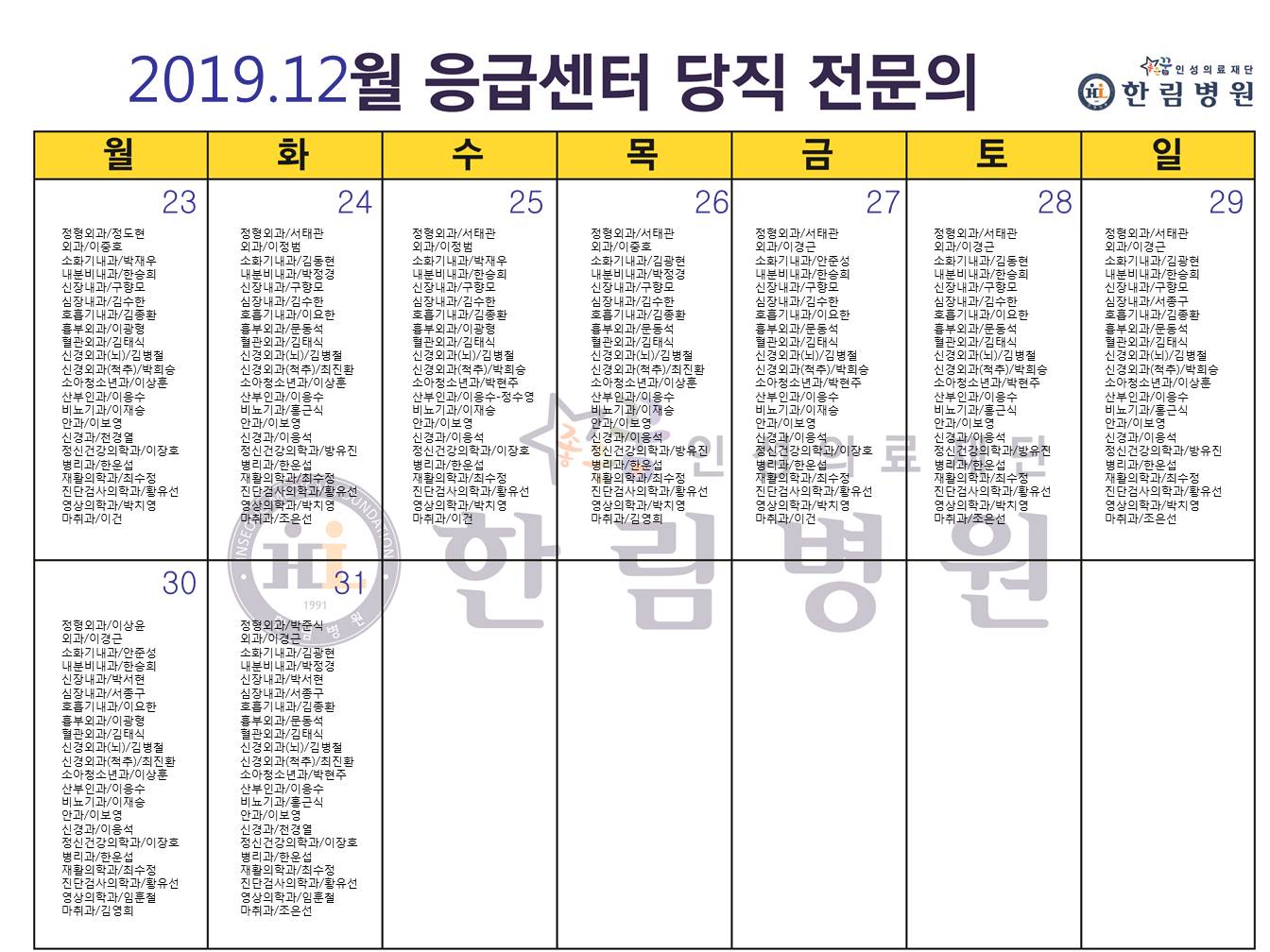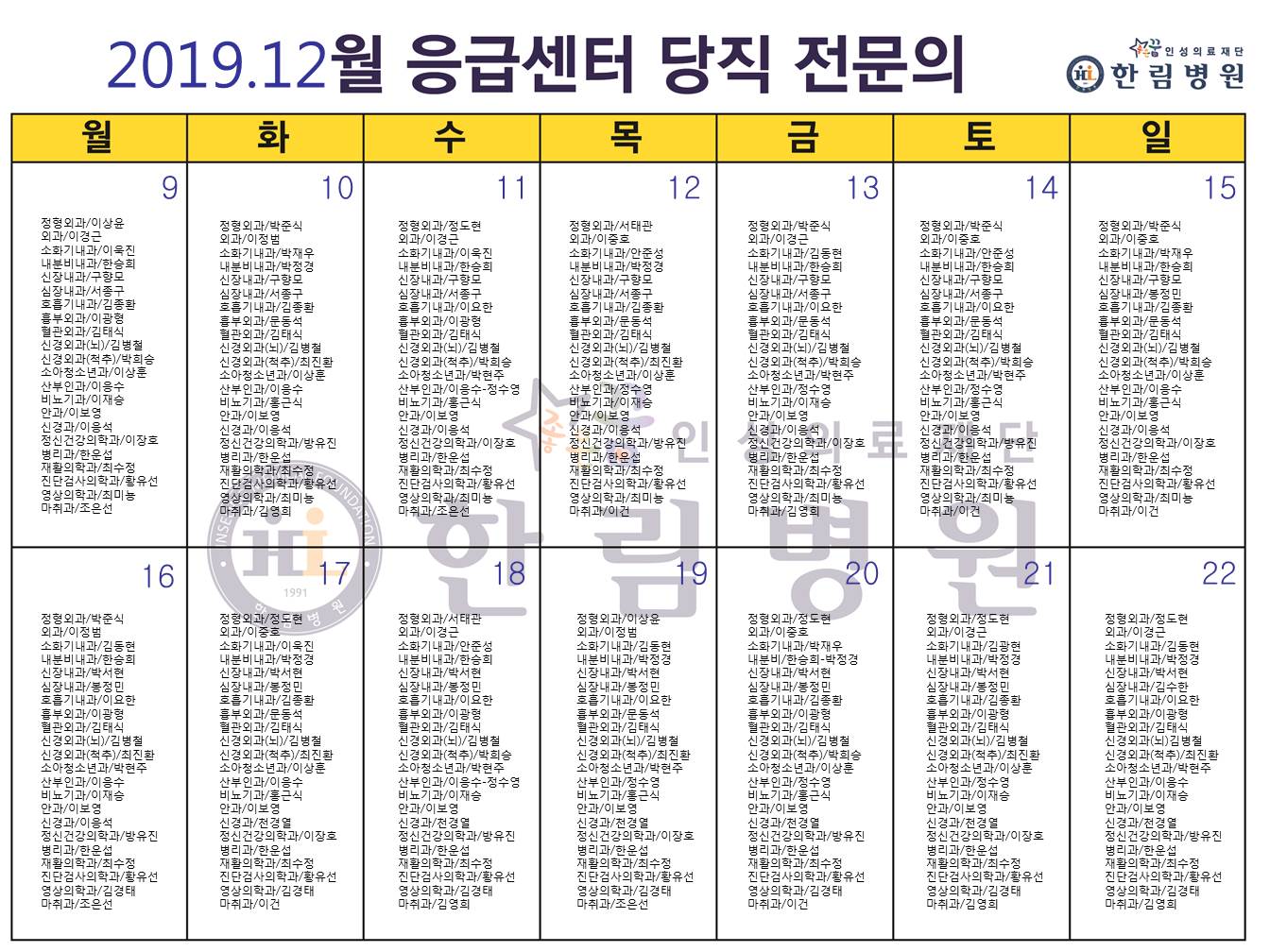 응급의료에 관한 법률' 일부 개정 법률안 공표에 따라 홈페이지에 당직전문의 명단을 게시합니다.