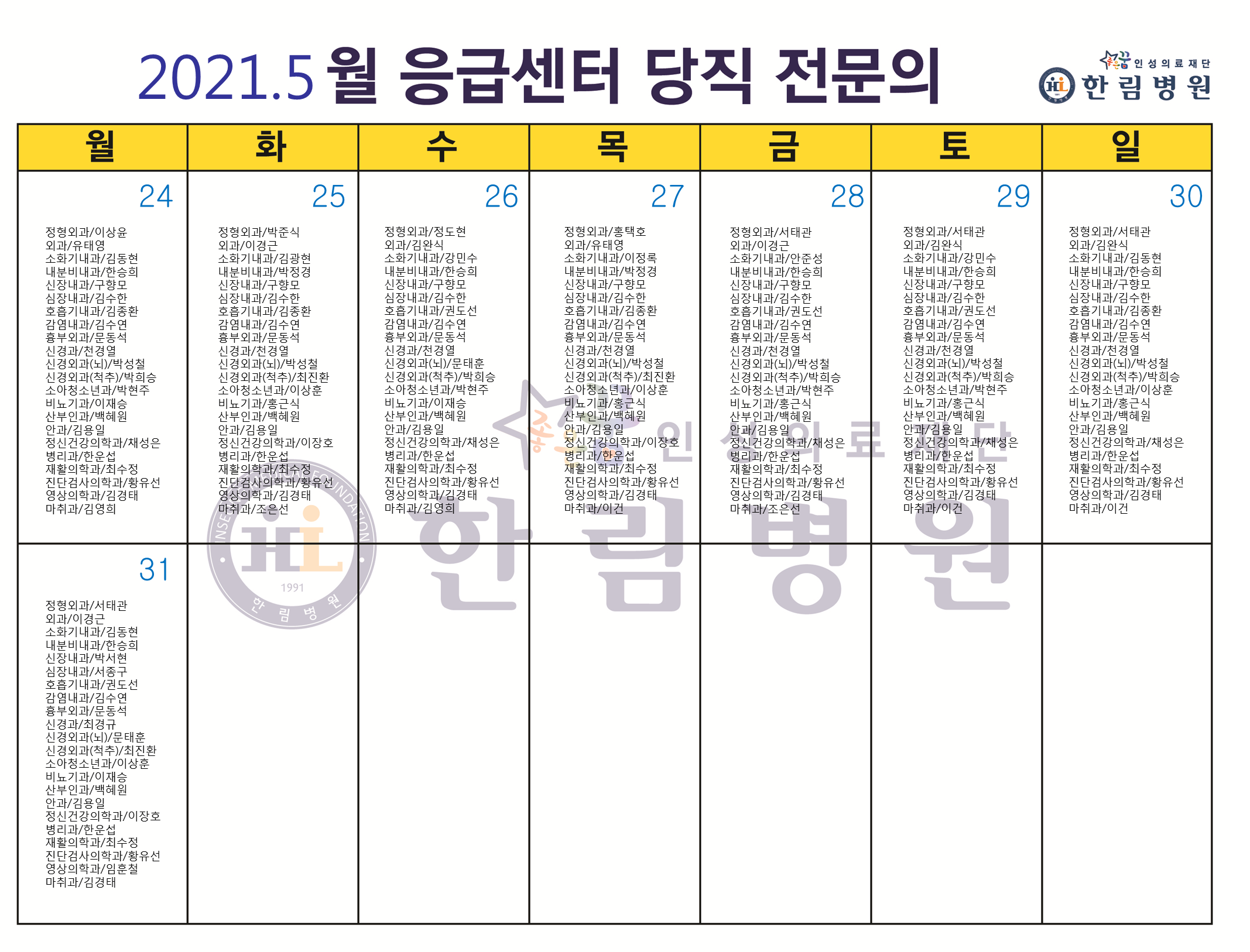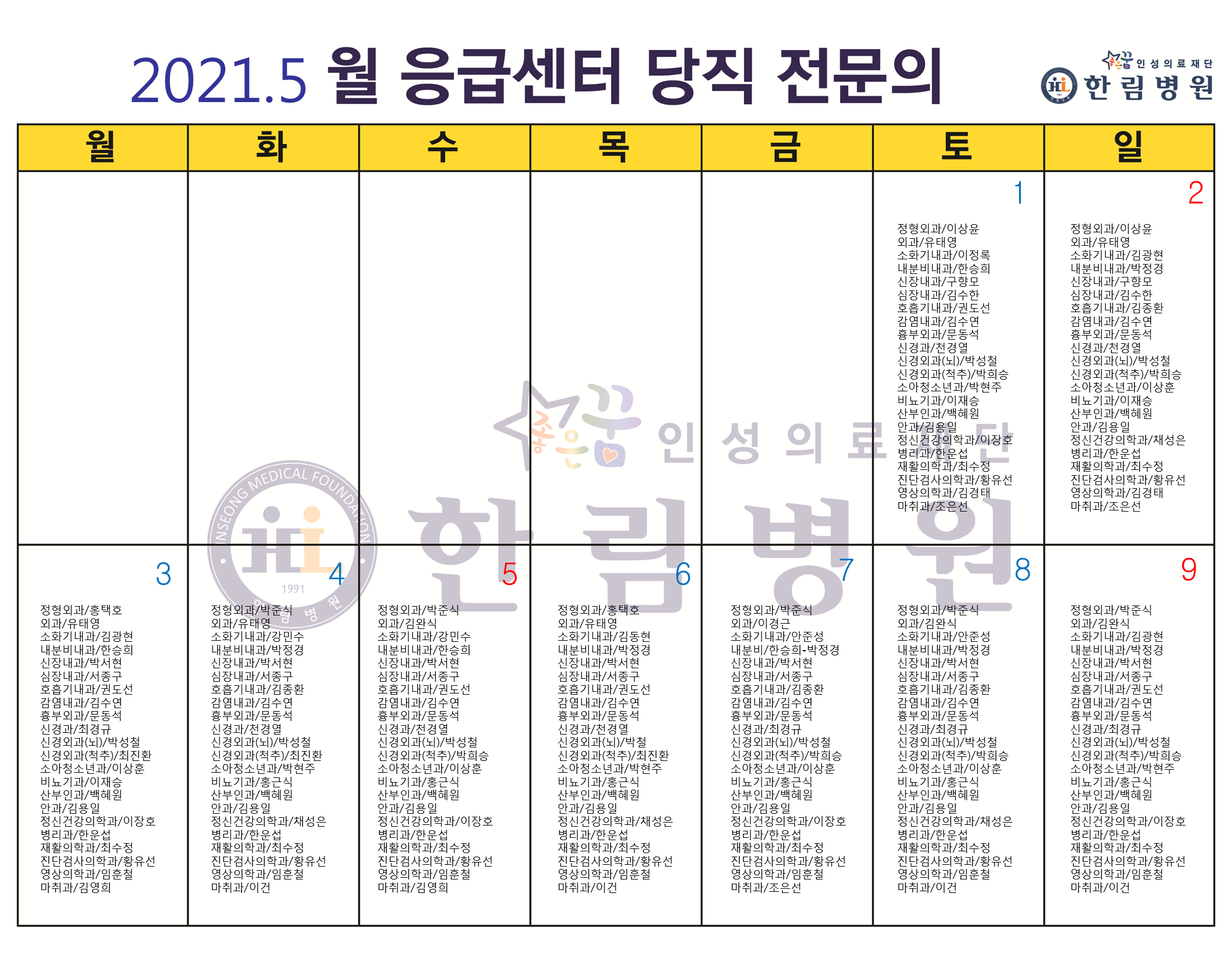응급의료에 관한 법률' 일부 개정 법률안 공표에 따라 홈페이지에 당직전문의 명단을 게시합니다.