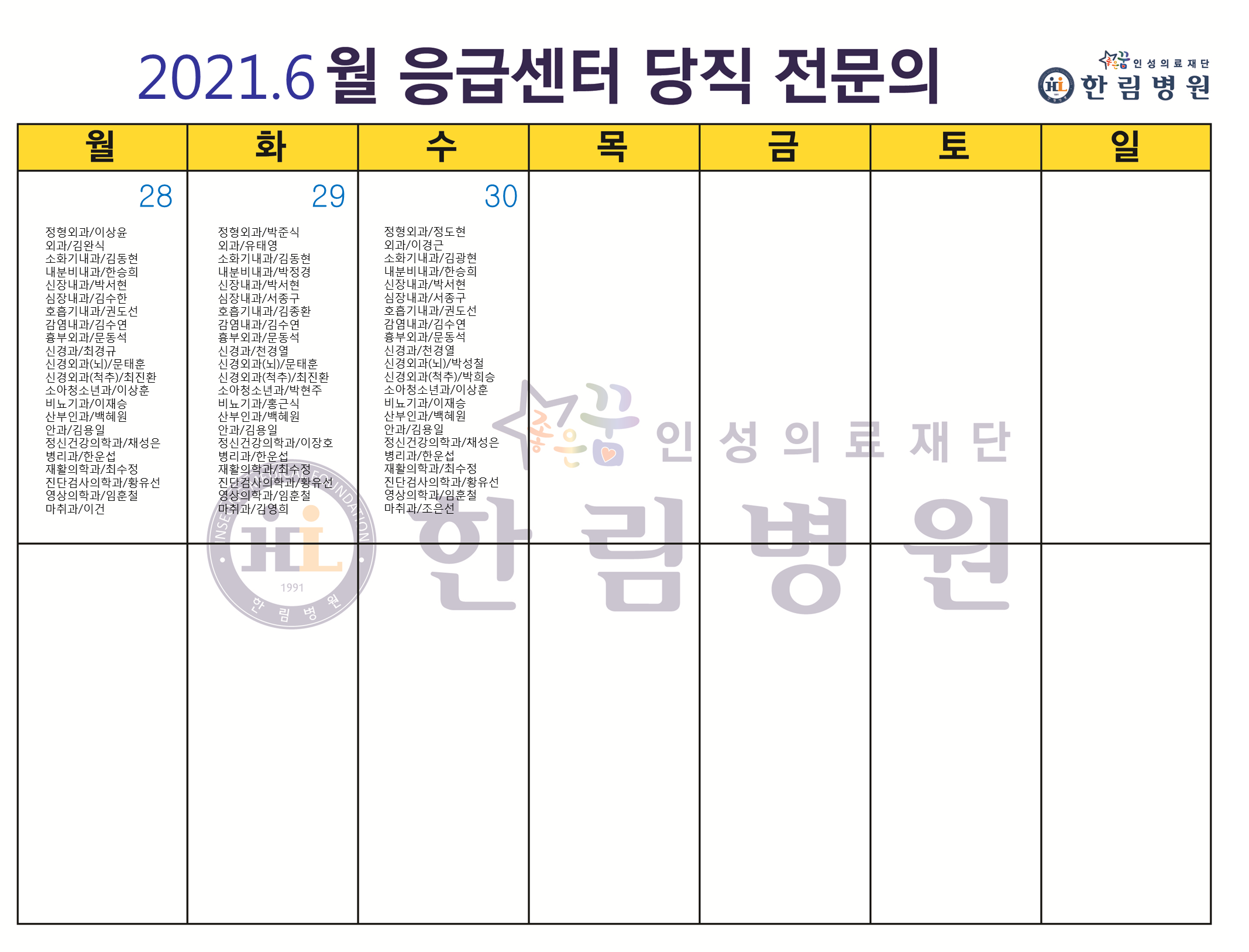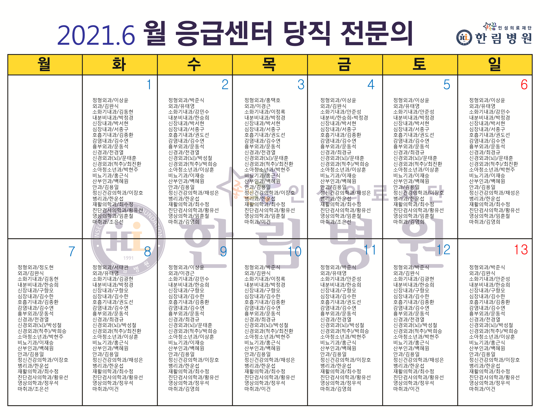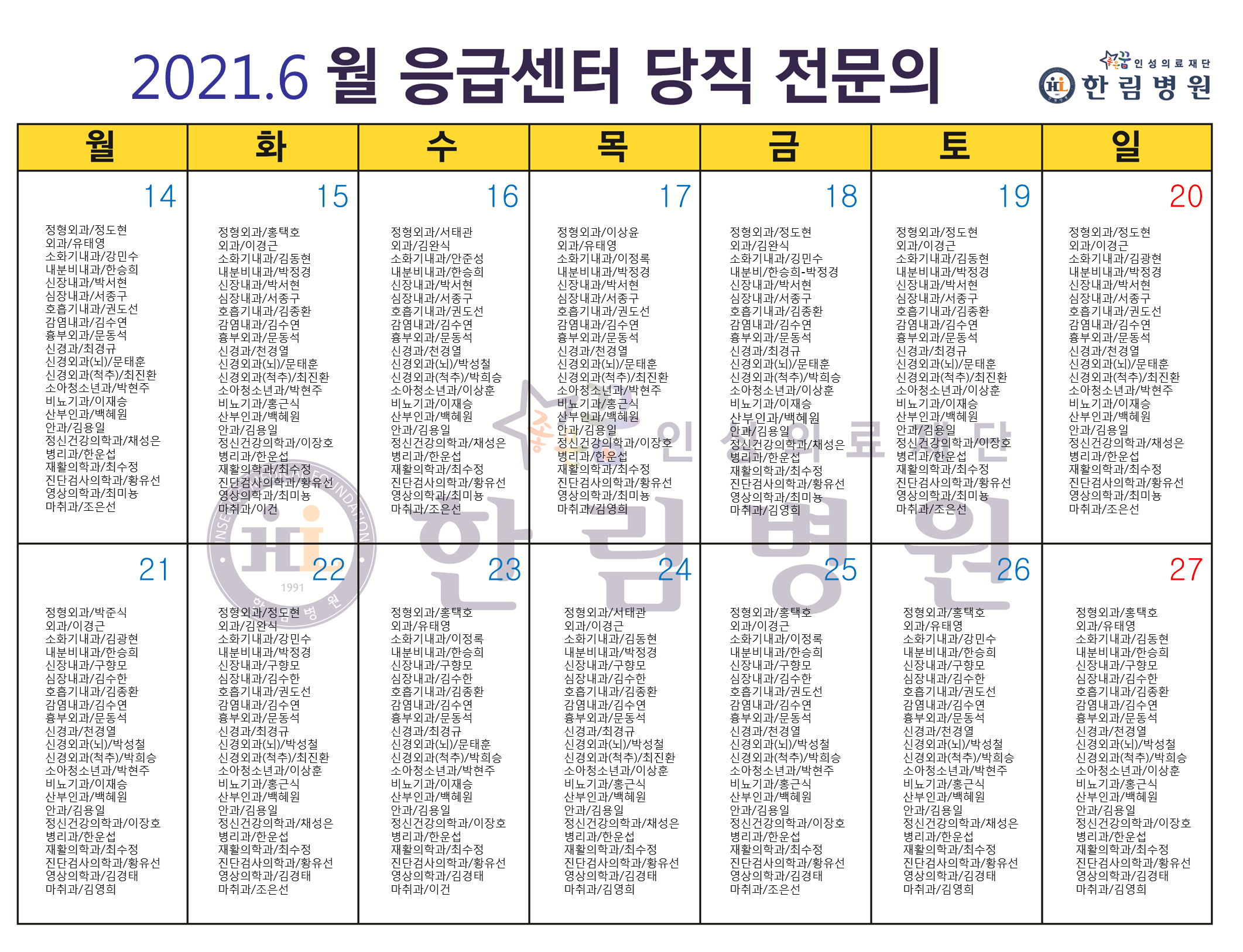 응급의료에 관한 법률' 일부 개정 법률안 공표에 따라 홈페이지에 당직전문의 명단을 게시합니다.