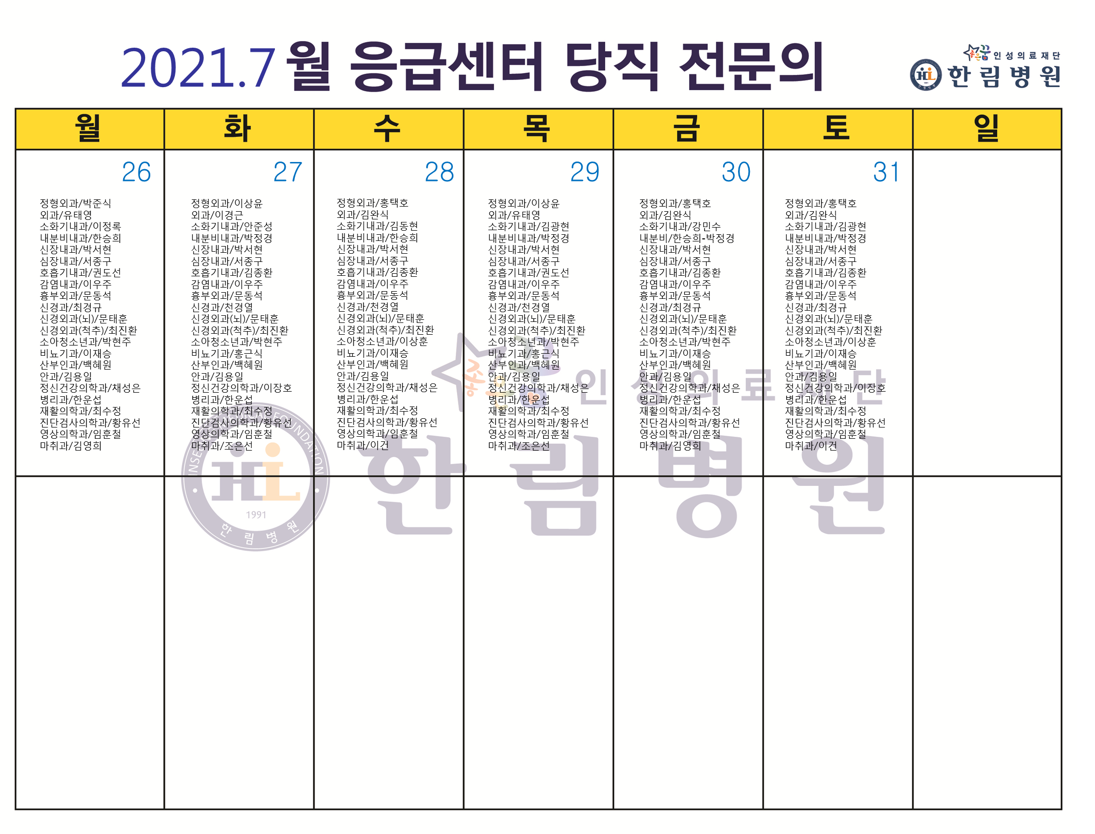 응급의료에 관한 법률' 일부 개정 법률안 공표에 따라 홈페이지에 당직전문의 명단을 게시합니다.