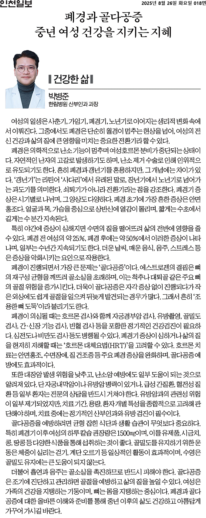 [인천일보]폐경과 골다공증 중년 여성 건강을 지키는 지혜